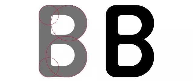 1.提炼出关键字母"B",由于是兄弟咖啡,当然要有温(ji)情的感觉,所以我使用了比较圆润的外轮廓。上下两个空白的洞就是用来做负形的;