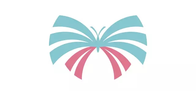 3.在画好的翅膀中间加入蝴蝶身体部分。最后,搭配颜色的时候需要结合品牌调性与图形的特点,有的适合单色,有的适合多色。