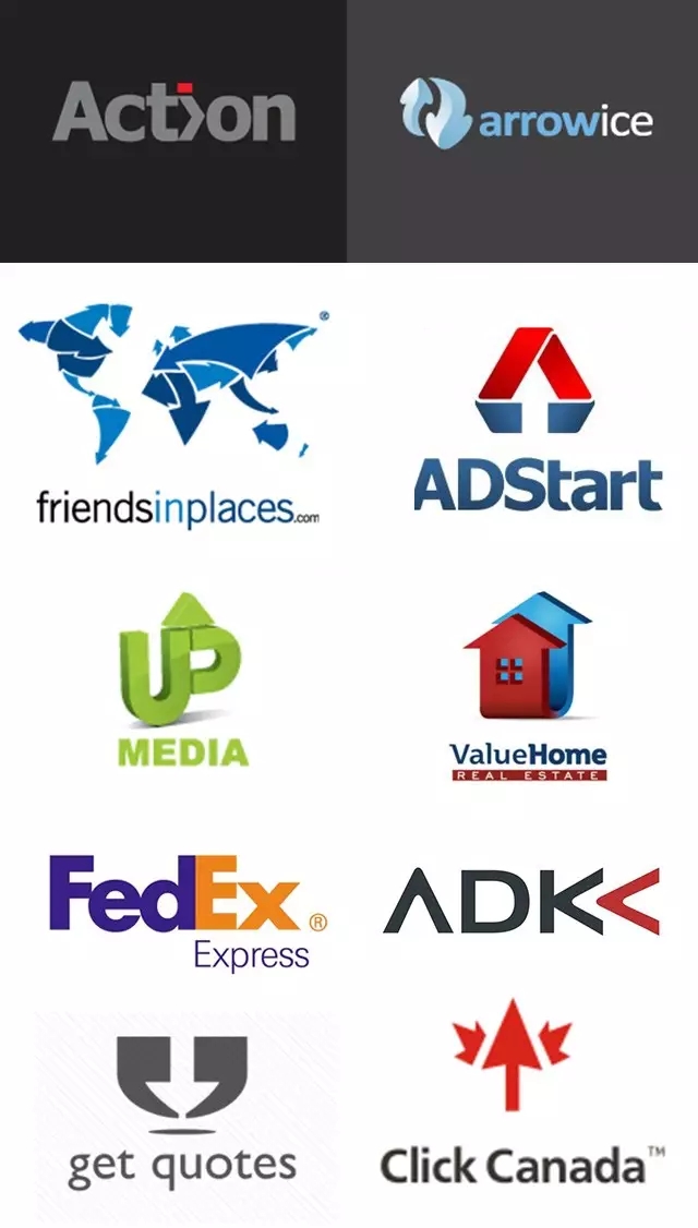 有人可能会觉得这算哪门子技巧啊,在标志中融入某一元素不是由产品品类、品牌的调性于理念决定的吗?对于普通图形确实是这样,但是箭头符号算是个例外,因为它有几个很Bug的寓意,如:积极向上、发展、前进、升级等等,这些正能量的寓意可都是客户爸爸的心头爱啊,而且箭头元素的可塑性非常强,几乎可以融入到任何图形和文字当中,所以我们可以看到带箭头符号的标志遍布各行各业