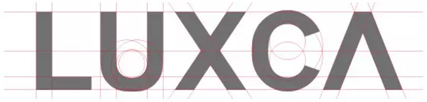 3.如果以上图作为最终稿还太过普通,铁定要被客户叼出翔,所以还得继续优化,然后我就想到了箭头符号,正巧里面有个字母“X”,又恰好在正中间,索性就拿它“开刀”,结果还真是把它切开了,左边部分自然就形成了一个箭头,为保风格一致,对字母“L”与“A”也做了“切割手术”。