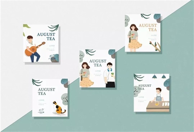 茶饮品清新的设计风格与八月&茶的定位于年轻人群体有很多的关系(18-30岁消费主流人群人群)