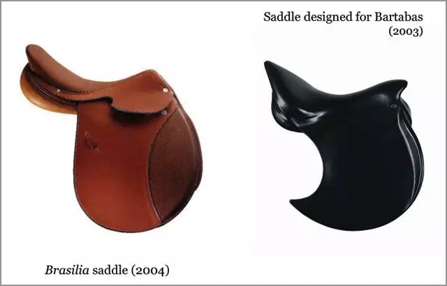 左边的马鞍是2004年款,右边的是2003年款,右边马鞍的特点是:由一块完整的皮革做成,上面没有缝一针一线。
