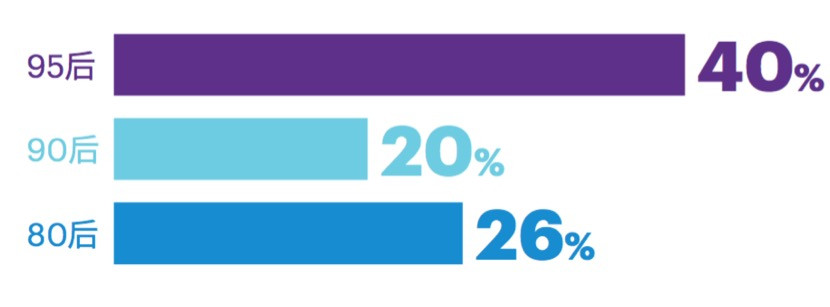 与80、90后主要聚焦微信、微博和QQ空间不同,约三分之一的95后青睐更丰富的社交平台,比如直播类、视频类平台。